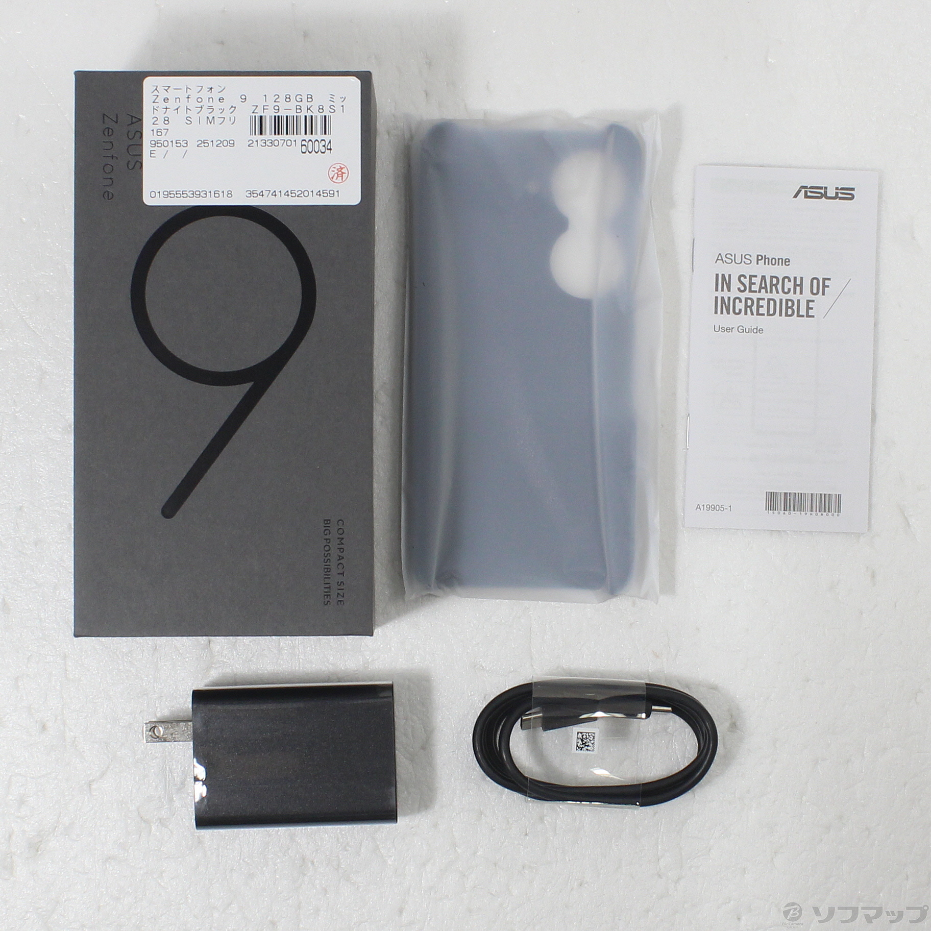 - USB電源アダプタ、USBケーブル、SIMトレイ、外箱