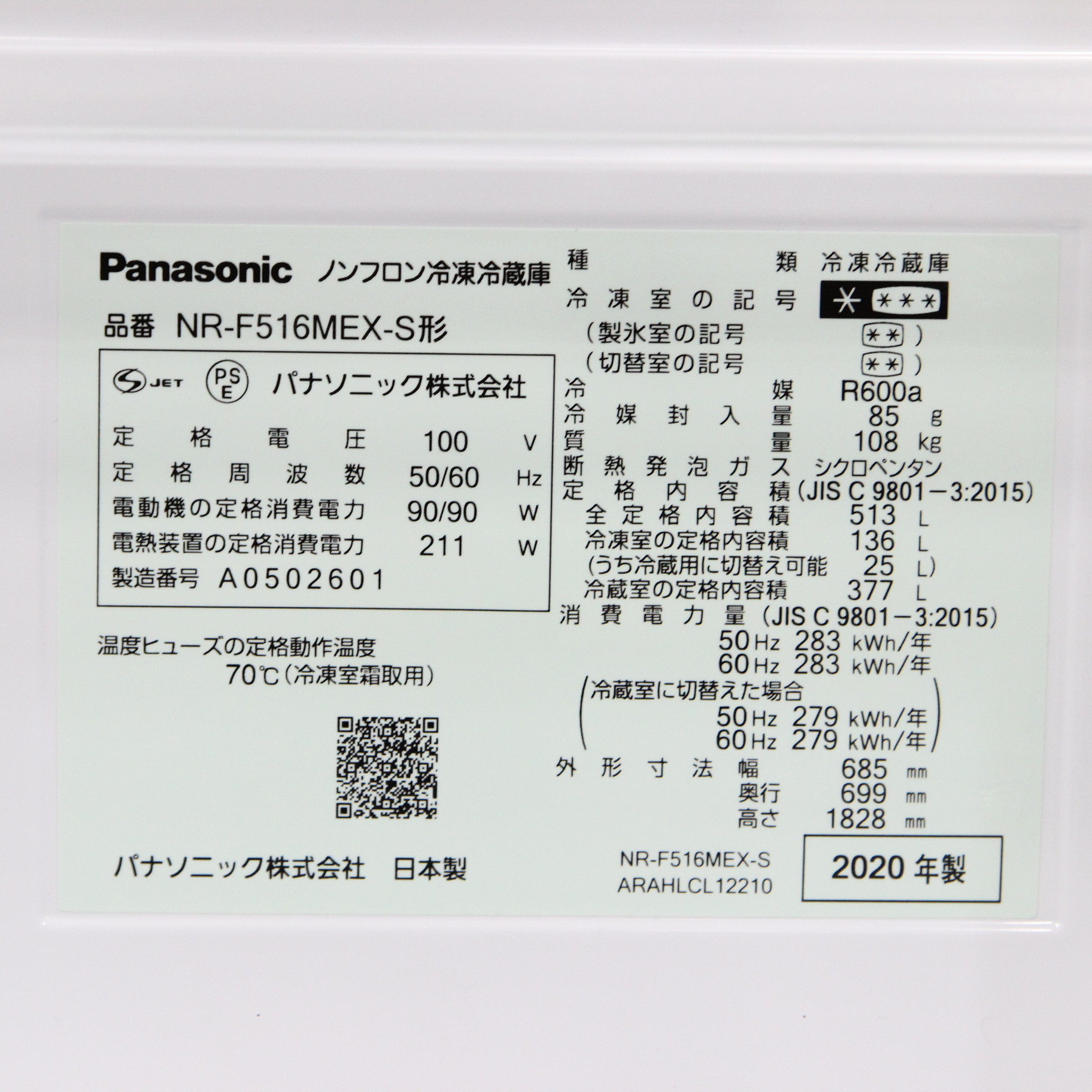- 商品名:〔展示品〕 冷蔵庫 MEXタイプ ステンレスシルバー NR-F516MEX-S [6ドア /観音開きタイプ /513L]