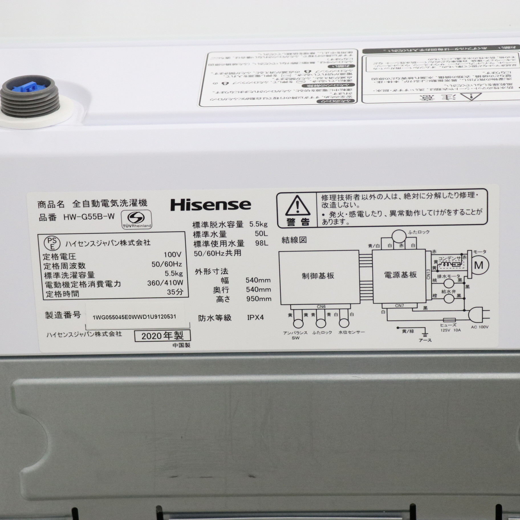 - 商品名:〔展示品〕 全自動洗濯機 ホワイト HW-G55B-W [洗濯5.5kg /乾燥機能無 /上開き]