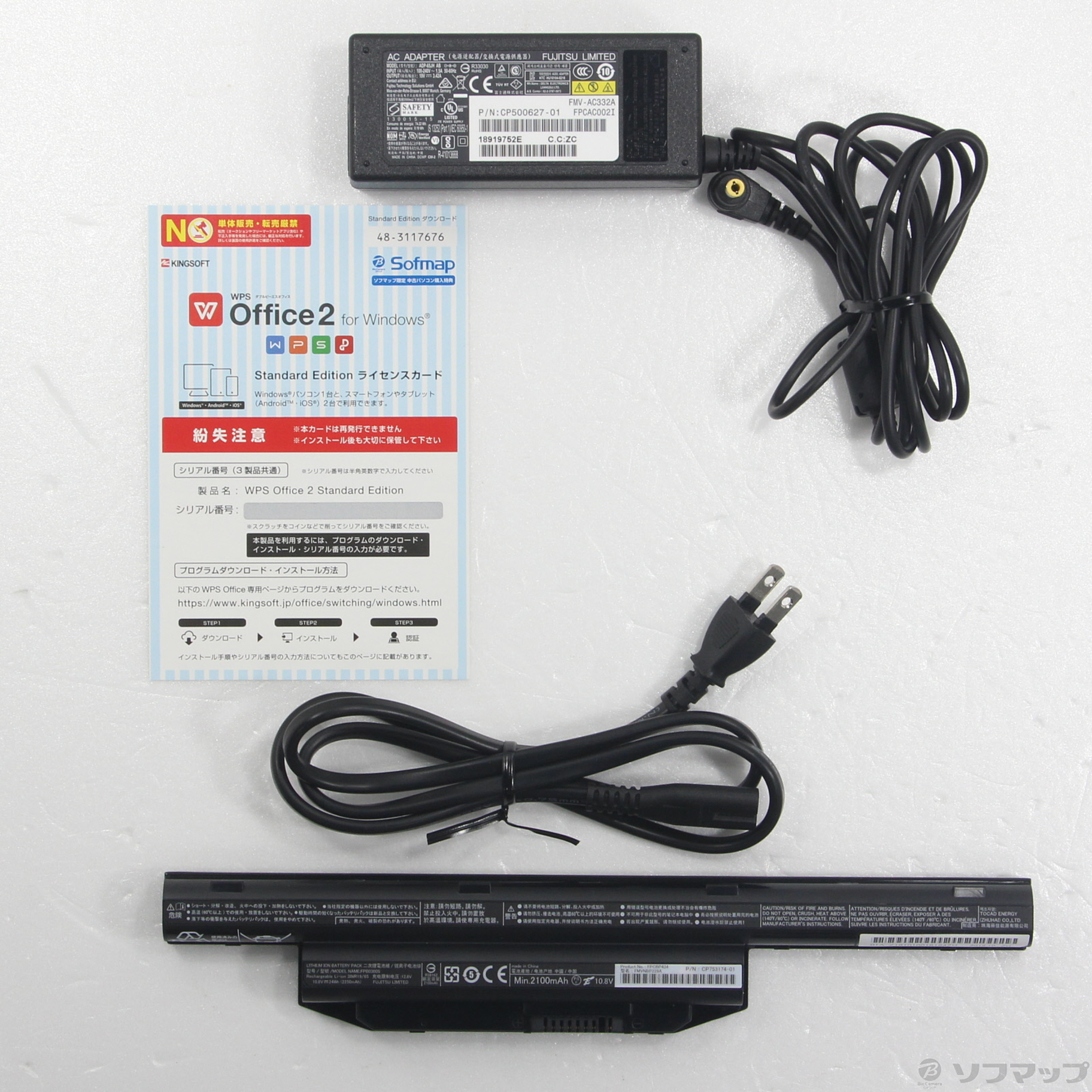- ACアダプター(本体用)、電源コード、バッテリー、WPS Office2
