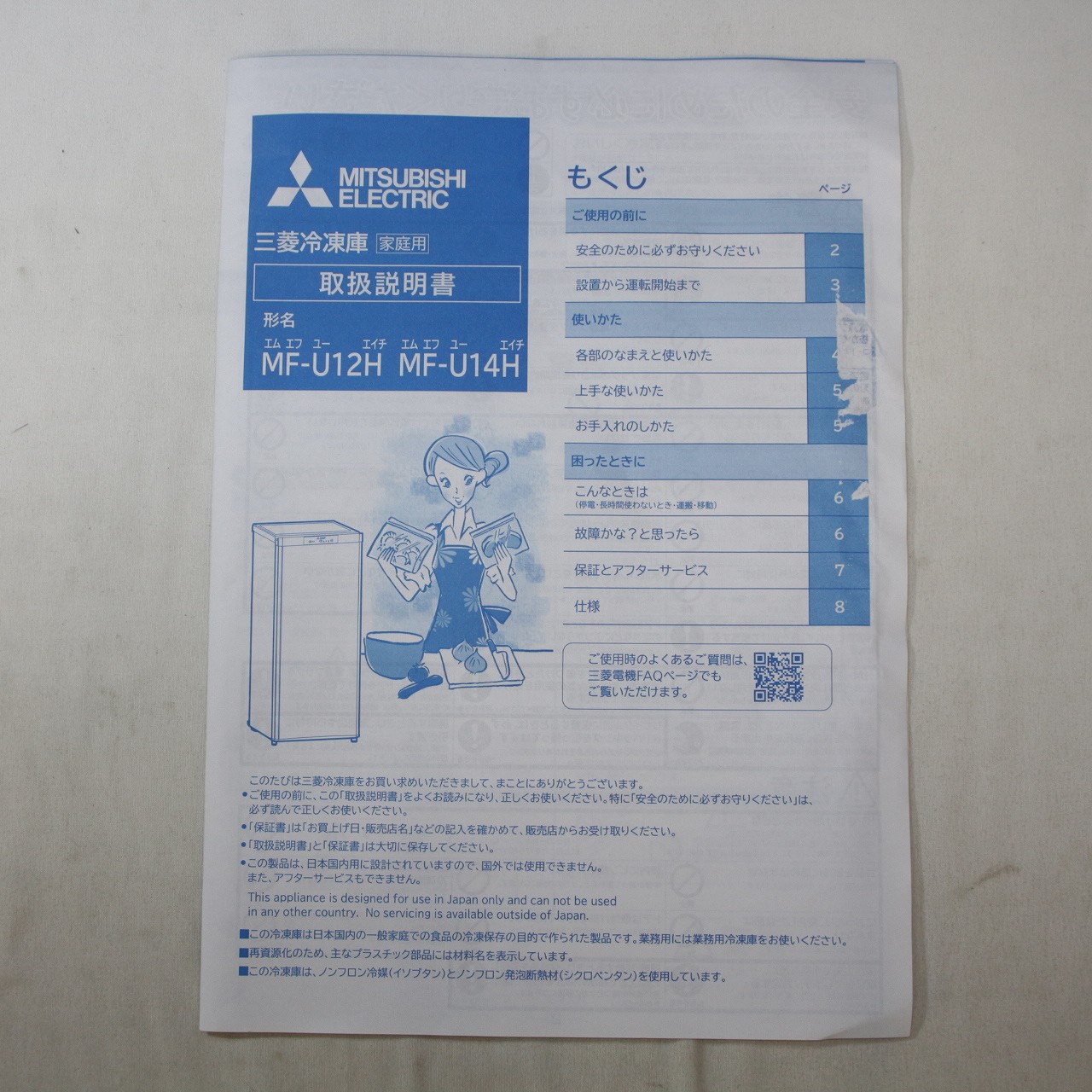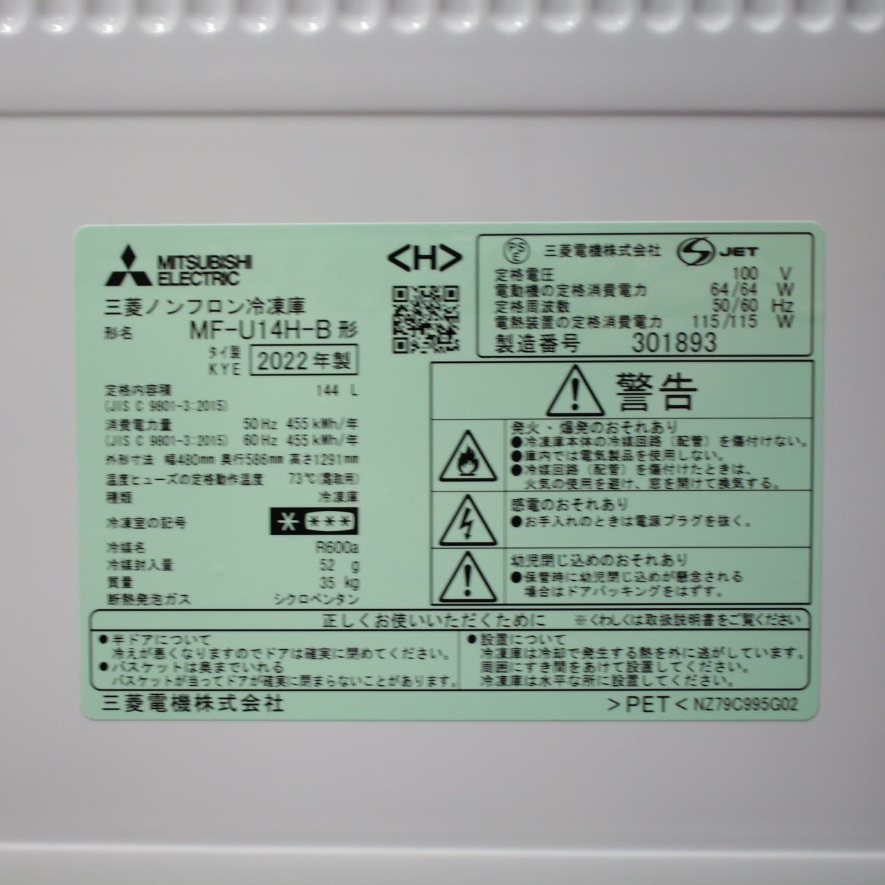 - 商品名:〔展示品〕 冷凍庫 サファイアブラック MF-U14H-B [幅48cm /144L /1ドア /右開きタイプ /2022年]