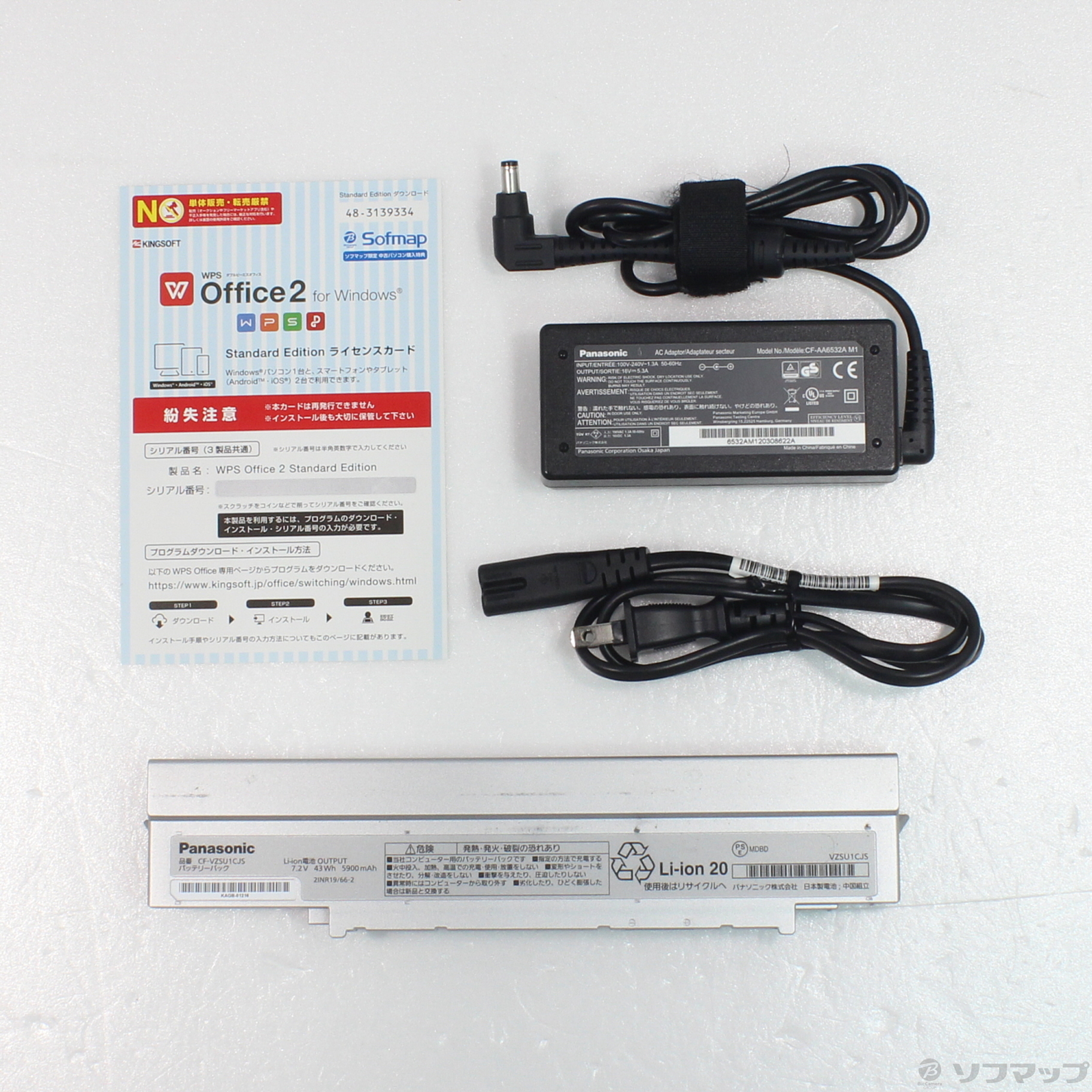 - ACアダプター(本体用)、電源コード、バッテリー、WPS Office2