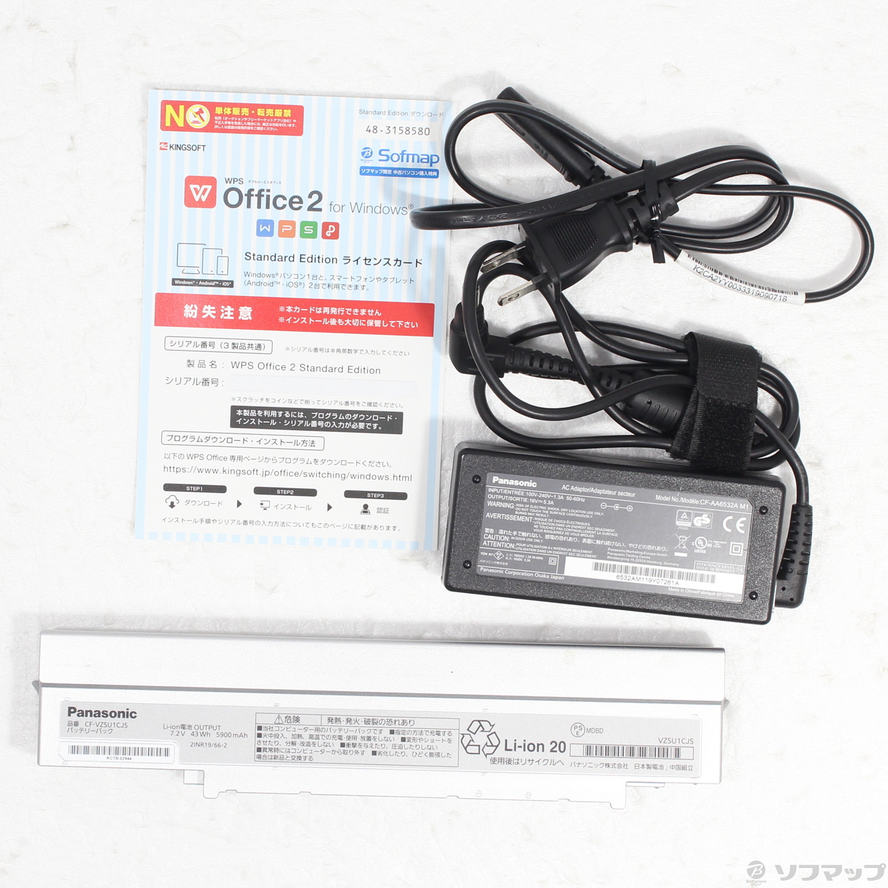 - ACアダプター(本体用)、電源コード、バッテリー、WPS Office2