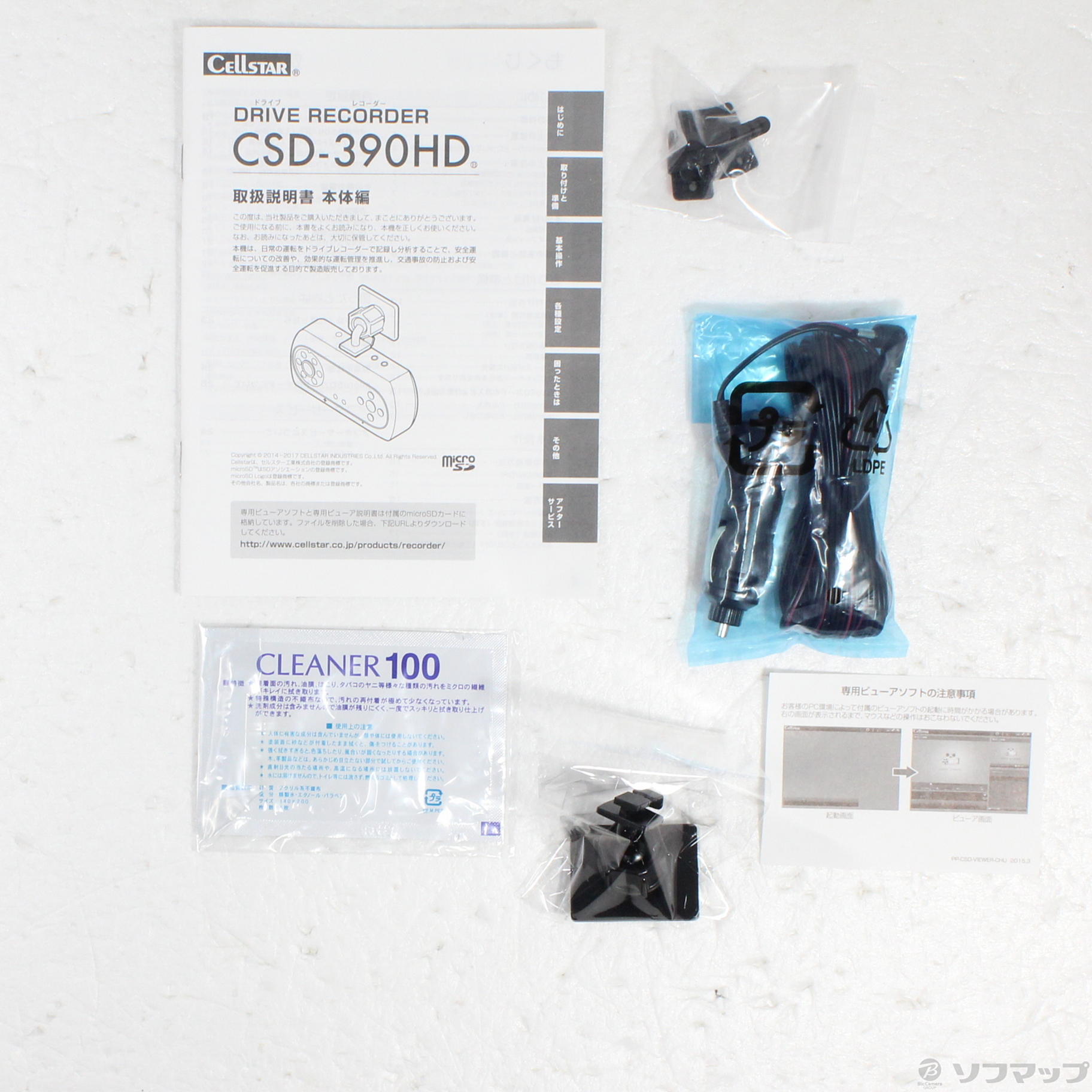 - 取扱説明書、コードクリップ(5個)、マウントベース、DCコード