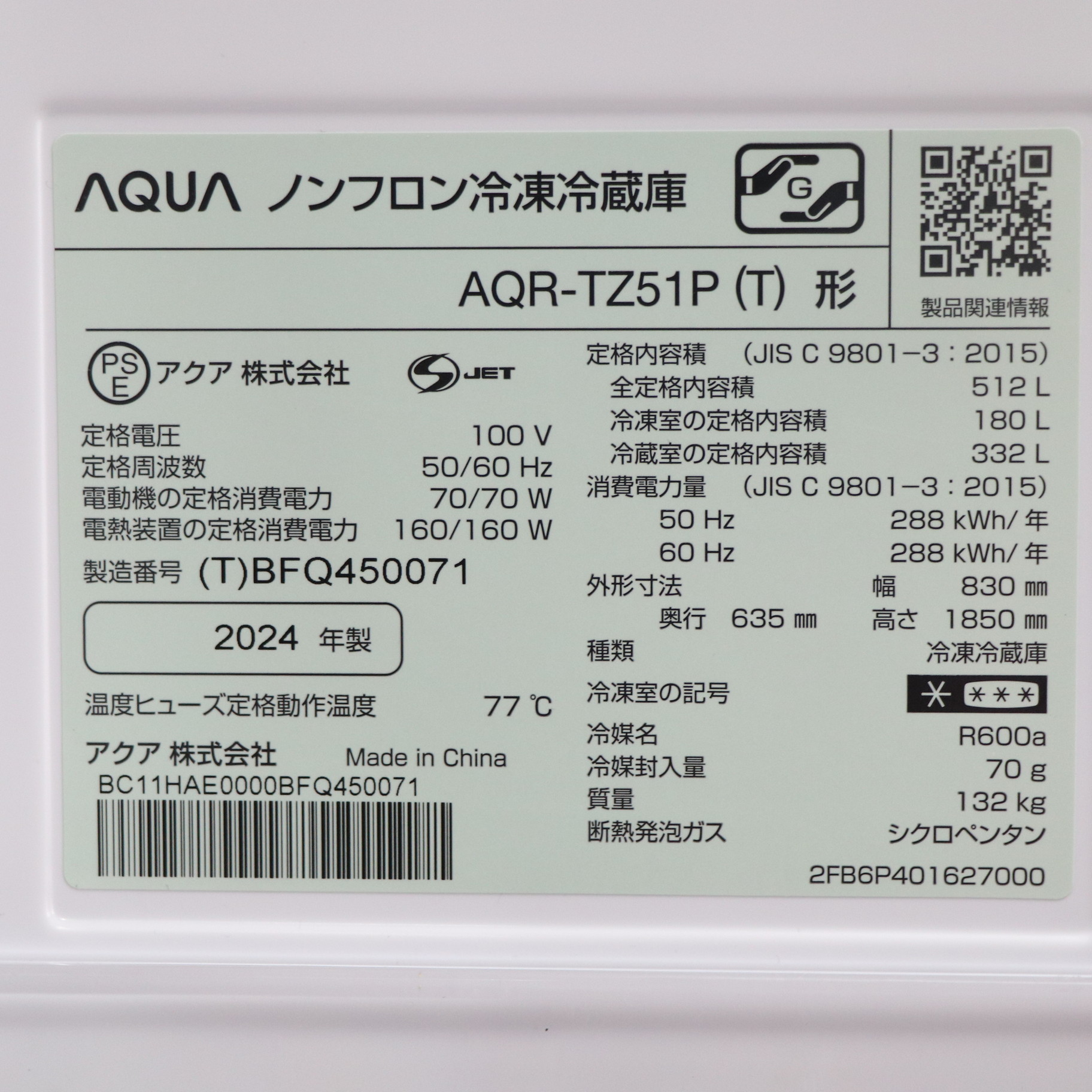 - 取扱説明書、調節脚×2、ガラストレイ×2、マルチポケット×2(右)、マルチポケット×3(左)、ミニボトルポケット、ボトルポケット(右)、ボトルポケット(左)、小物ケース、チルドルームケース、野菜ケース、給水タンク、フレッシュ野菜ケース(大)、フレッシュ野菜ケース(小)、卵皿、フリーケース、アイスボックス、製氷ユニット、防音マット、氷スコップ、フリージングボックス(右)×3、フリージングボックス(左)×2、フリージングトレイ(大)、フリージングトレイ(小)、クイック冷凍コーナー(ケース)
