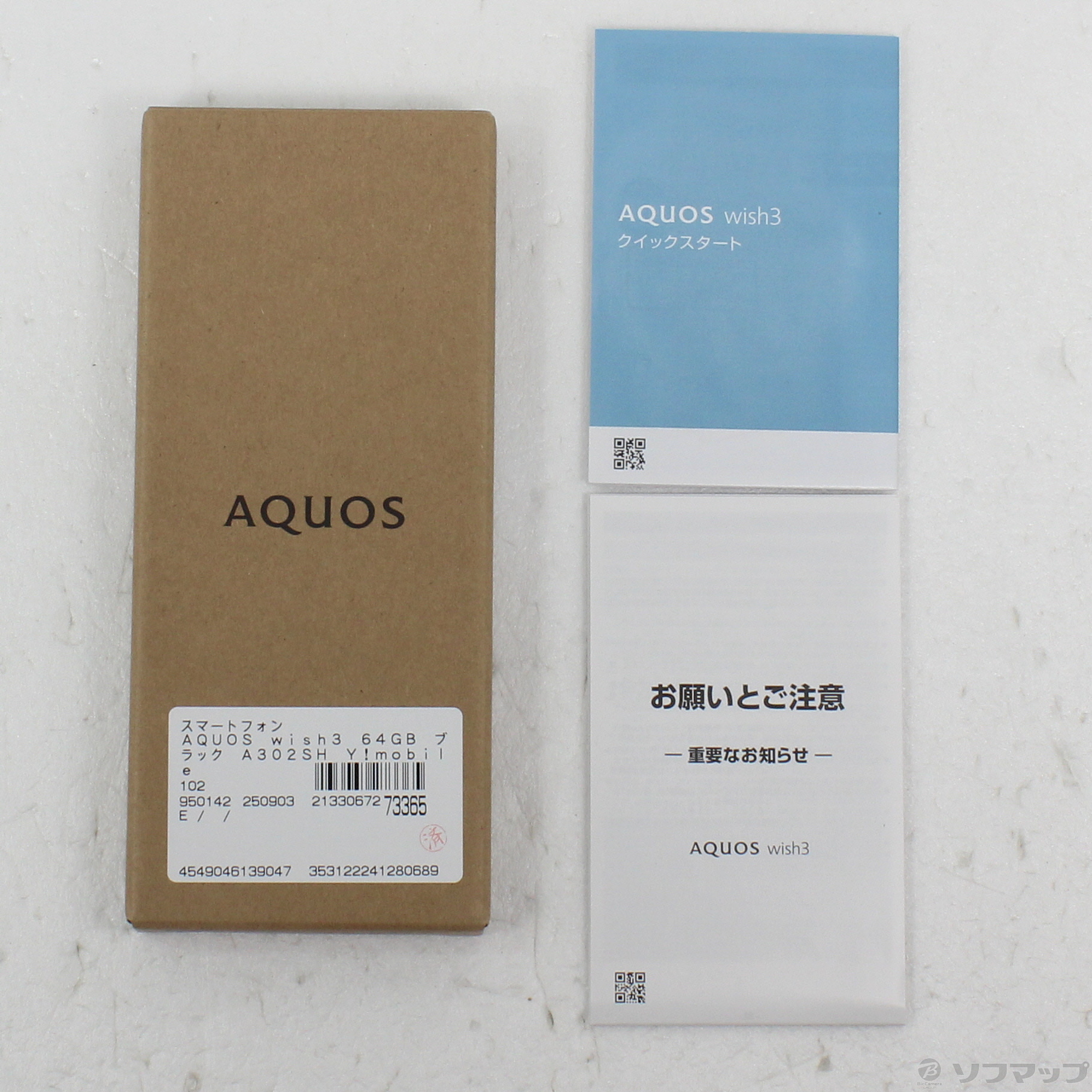 - 商品名:AQUOS wish3 64GB ブラック A302SH Y!mobile SIMフリー