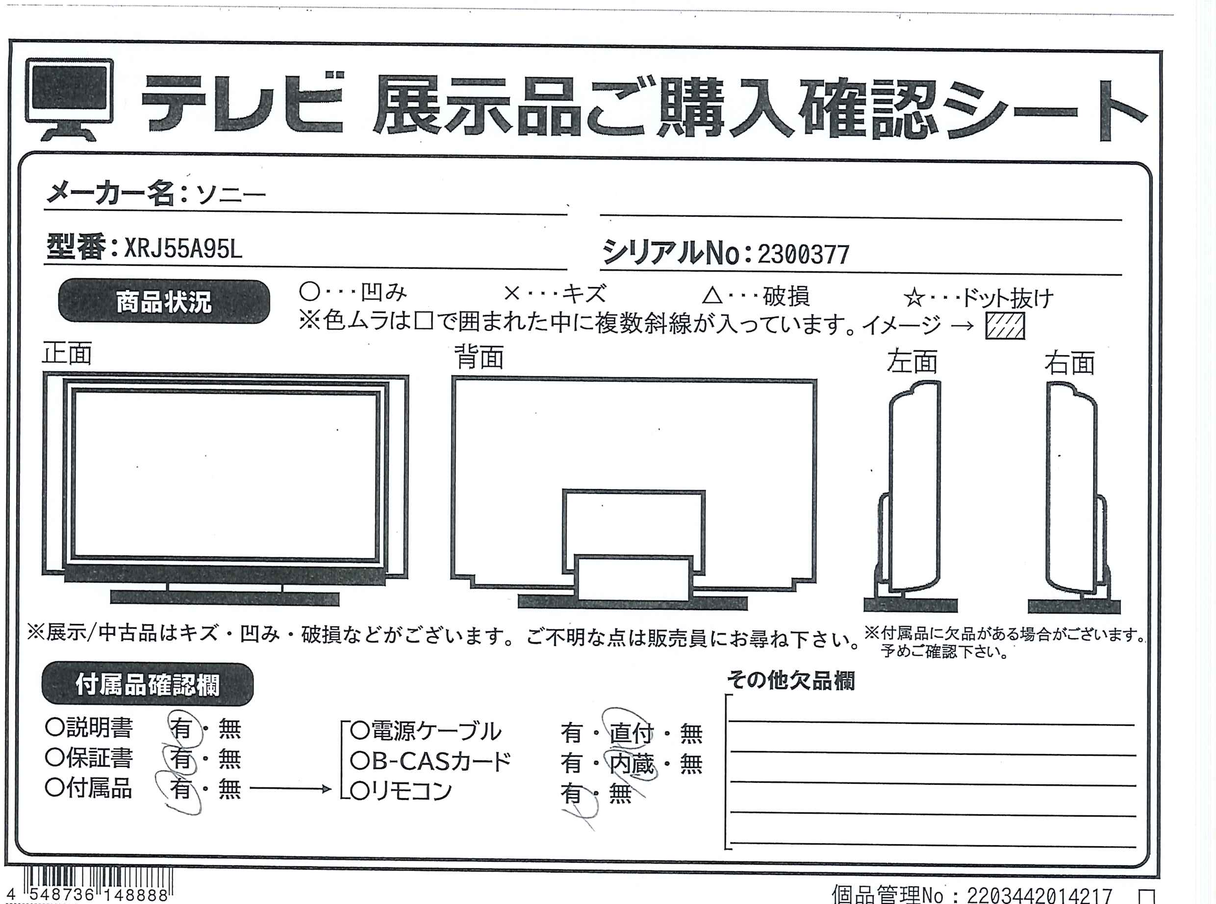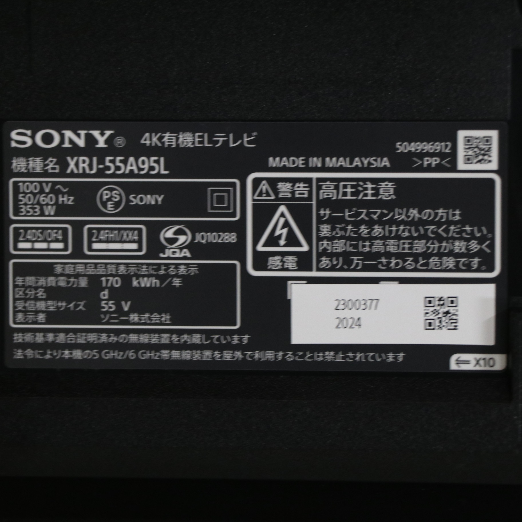 - 商品名:〔展示品〕 有機ELテレビ BRAVIA(ブラビア) XRJ-55A95L [55V型 /Bluetooth対応 /4K対応 /BS・CS 4Kチューナー内蔵 /YouTube対応]