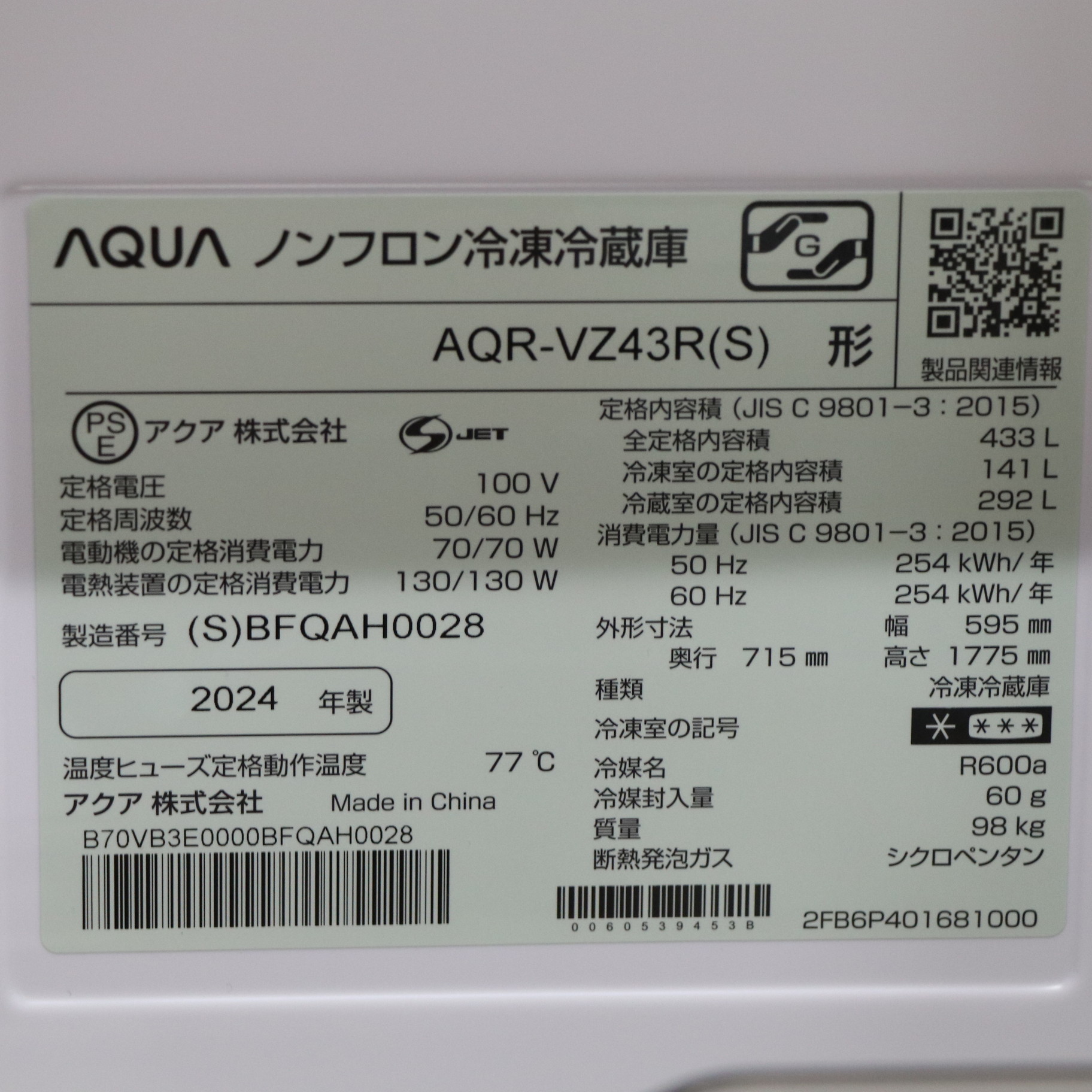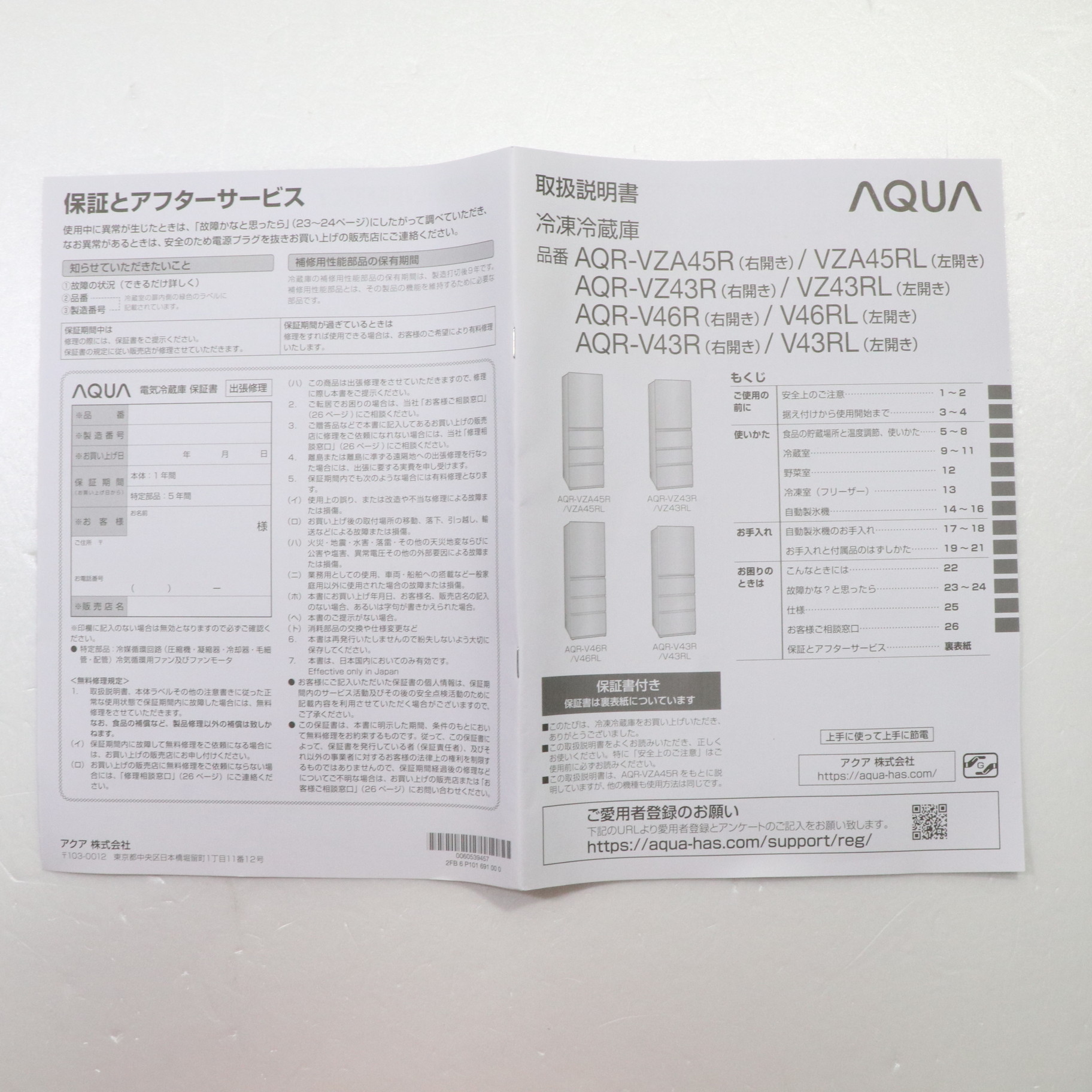 - 取扱説明書、ガラス棚(ノーマル)、ガラス棚(ハーフ)×2、チルドケース、給水タンク、ベジチルドケース、マルチポケット(小)、マルチポケット(大)、ワイドマルチポケット、卵皿&チューブスタンド、ボトル&ドレッシングポケット、野菜ケース、バスケット、おそうじ栓、冷凍ケース(上)、アイストレイ、製氷ユニット、氷スコップ、冷凍ケース(下)、バスケット、フリージングトレイ、キックプレート、調節脚×2