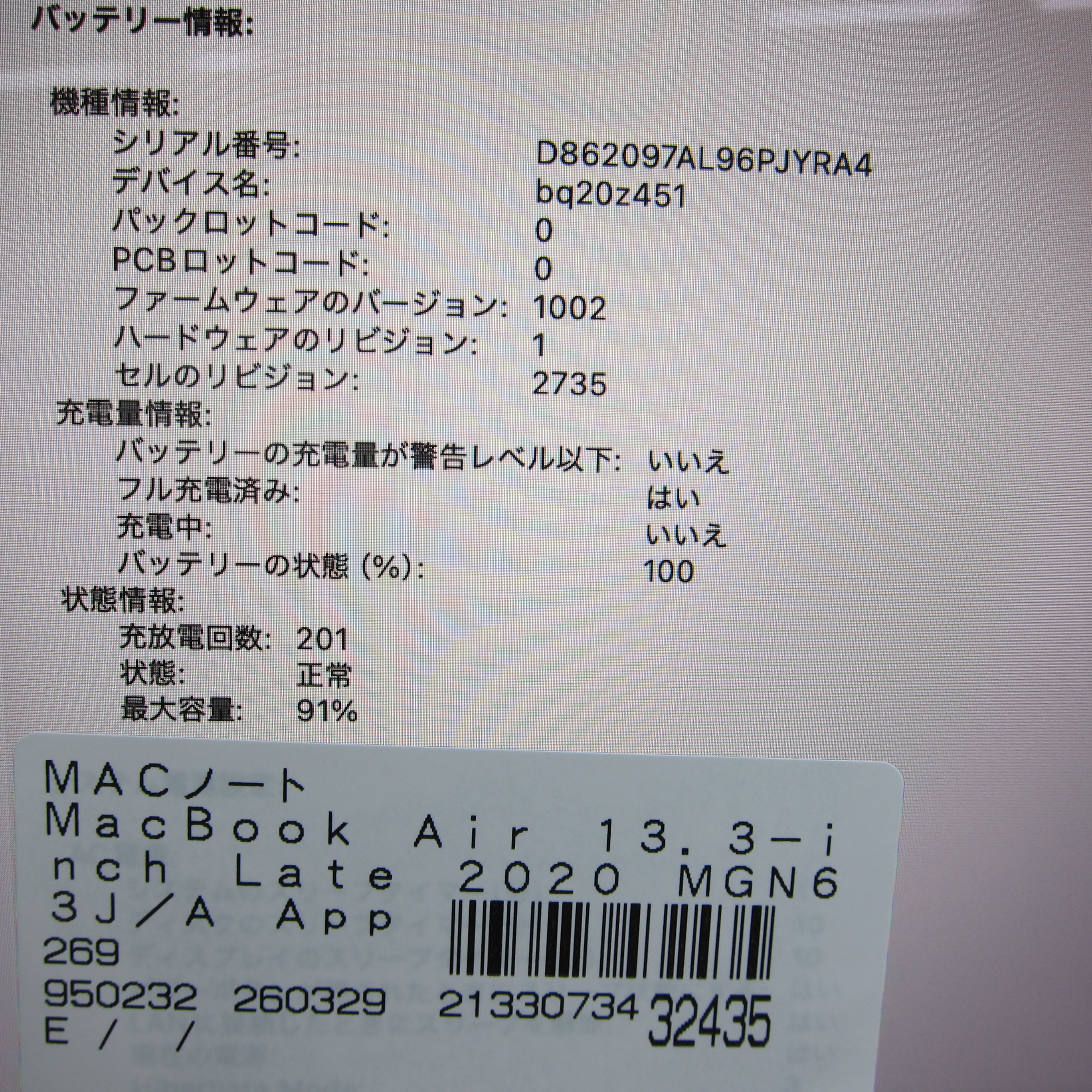 - 商品名:MacBook Air 13.3-inch Late-2020 MGN63J/A Apple M1 8コアCPU_7コアGPU 8GB SSD256GB スペースグレイ 〔26.3 Tahoe〕 [グラフィック:オンボード/JISキーボード]